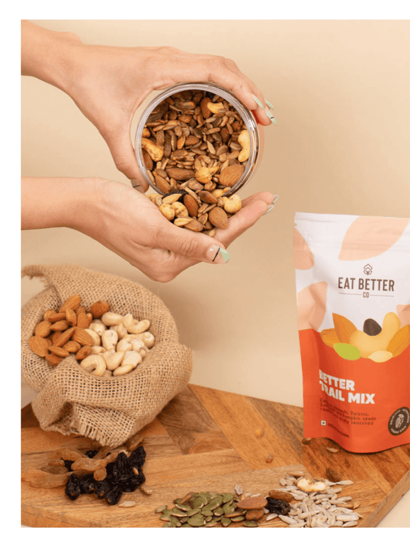 A delicious combination of premium nuts, seeds & raisins. Roasted & seasoned with our secret spice mix. Good health and taste in every bite.