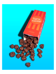 Our popcorns are carefully caramelized by hand immediately after the corn kernels are popped into fluffy popcorn. They are then sprinkled with 50% dark single-origin chocolate.