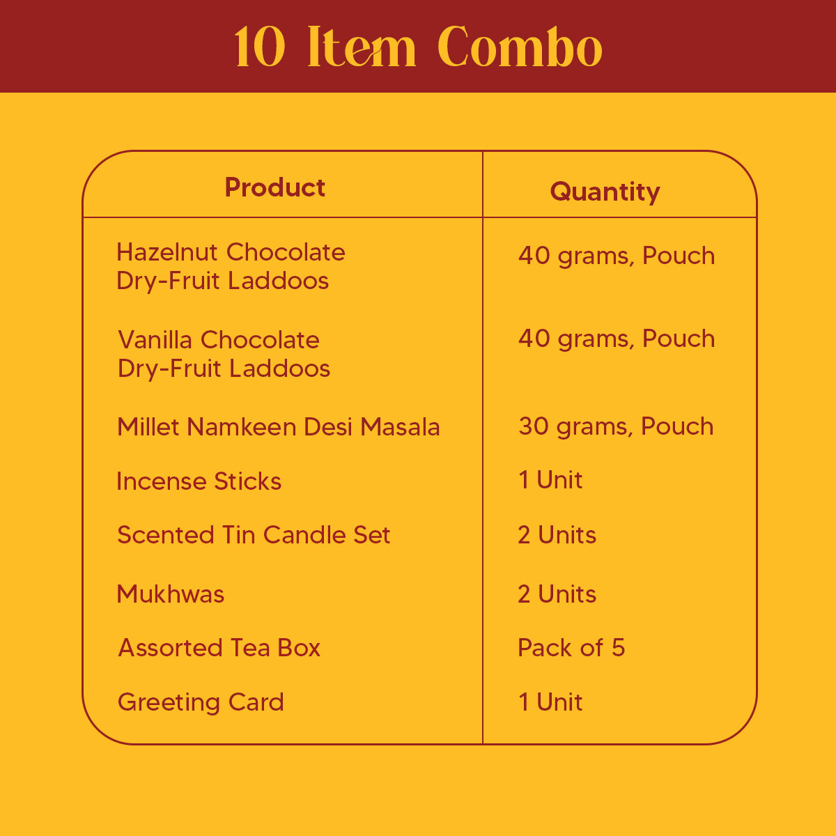 Light, flavor, and tradition come together in the Premium 10-Item Diwali Gift Hamper by Eat Better Co. With indulgent sweets, savory bites, candles, incense, and more, it’s a festive gift that feels both wholesome and heartwarming.