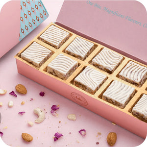 Gulkand crunch bites is a delicious, mouth-watering and unique fusion sweet. The taste of this modern sweet dish is almost similar to the Indian gulkand. Our gulkand crunch bites is made from high-quality ingredients like cashew nuts, almonds, white compound, rose petals and gulkand. This fusion sweet has an appealing outer layer with crunchy texture in it.