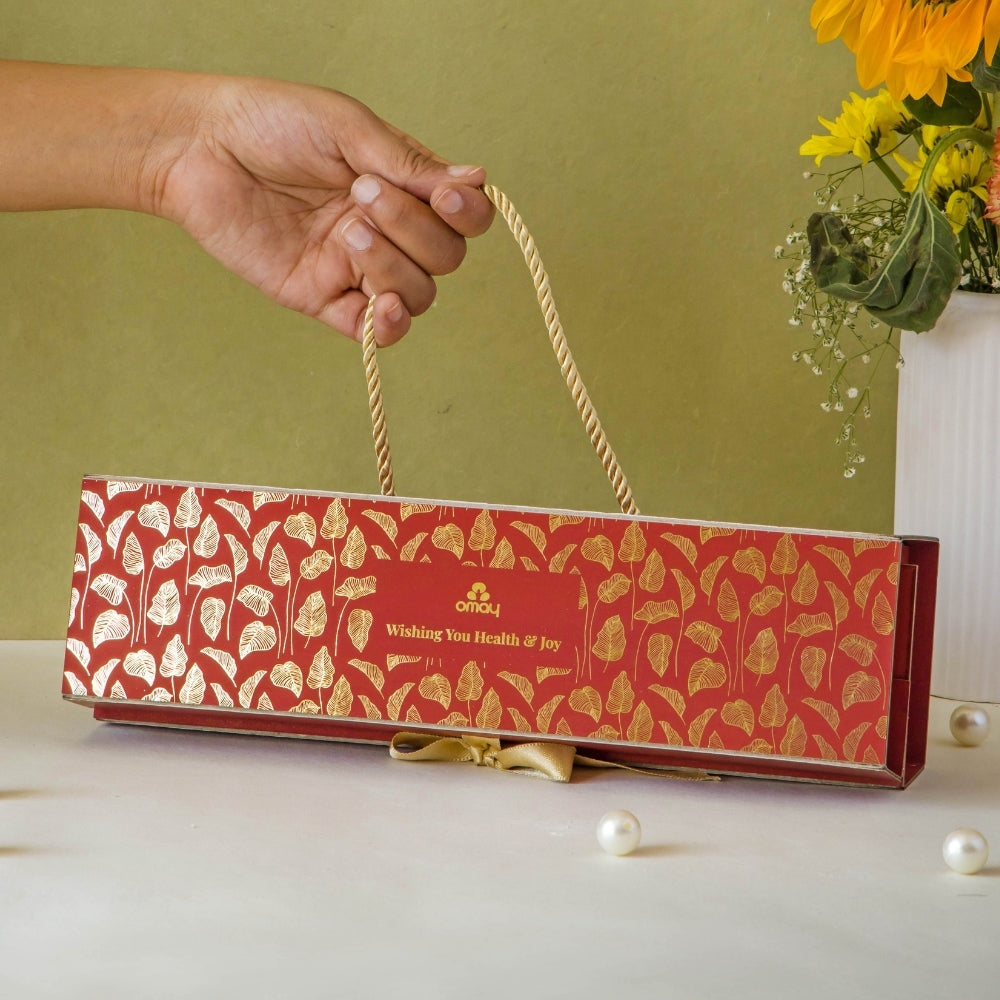 Looking for the best healthy gift hampers? This festive season, bring joy and cheer to your teams, clients, friends, and family with Omay Foods' Gourmet Snacks Gift Box. This Diwali hamper features a premium selection of non-fried snacks, and premium dry-fruits, all elegantly packed in beautifully crafted gift hampers. Ideal for both personal and corporate gifting, this hamper blends festive elegance with wholesome and delightful treats, perfect for all occasions, be it personal or corporate.