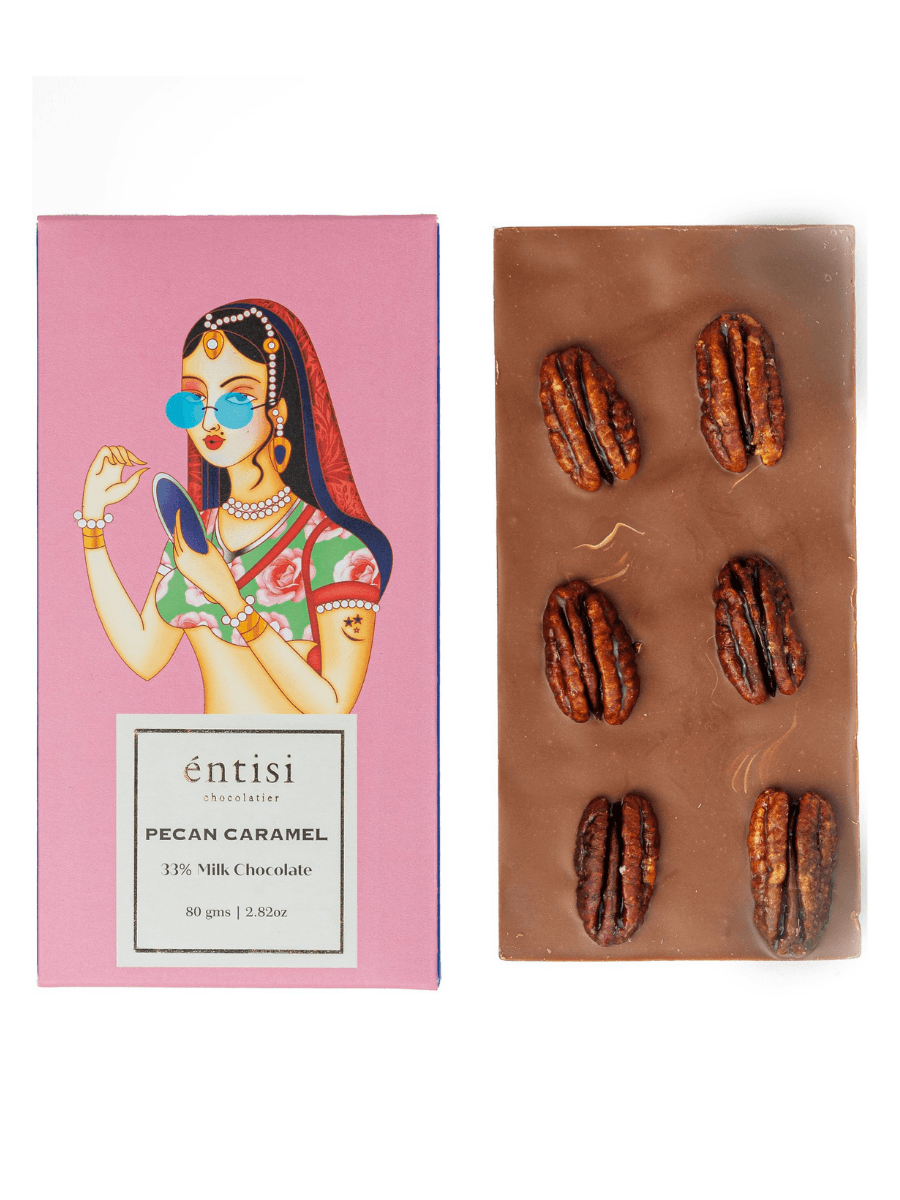 Pecan Caramel Milk Chocolate Bar - 80g - Entisi Chocolates