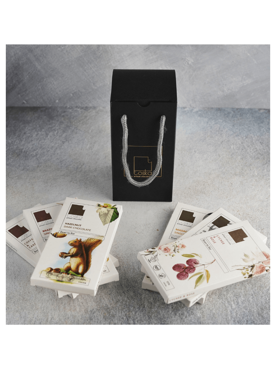The Pack of 6 Chocolate Bars - Black Box Bag - Toska Chocolates